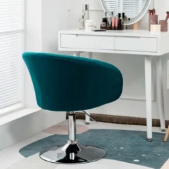 Costway Modern Tufted Fabric Accent Chair Upholstered Armchair With Rubber Wood Legs Blue/Grey