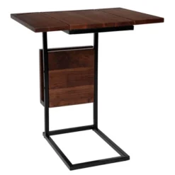 BIRDROCK HOME Acacia Wood Expandable C Shaped Side Table With Magazine Rack, Phone & Tablet Stand