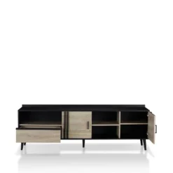 Dominique TV Stand For TVs Up To 78″ Black/White Oak – MiBasics