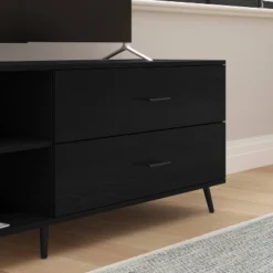 65″ June Mid-Century Modern TV Stand For TVs Up To 65″ With Adjustable Shelf Black – Taylor & Logan