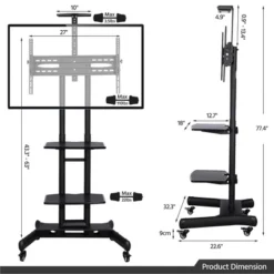 Yaheetech Adjustable Mobile TV Stand Rolling TV Cart With Wheels Black