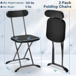 Costway 2-Pack Folding Chair With Metal Curved Feet Wide Seat & Ergonomic Backrest Black/White