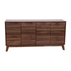 - Retro inspired mid-century modern buffet with 4 soft close doors, 2 adjustable shelves, and floor protector glides