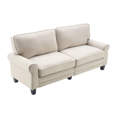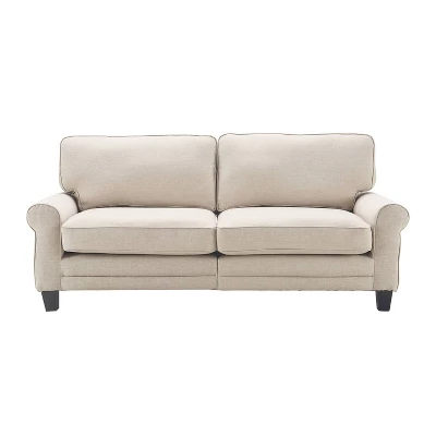 Enjoy functional style and plush, comfortable seating with the Serta Copenhagen 73″ Sofa. A great solution for smaller spaces, its compact size and easy tool-free assembly makes it an affordable and stylish seating solution for your apartment, condo or office. Soft rounded arms, pillowy back cushions and espresso finished footers bring traditional style to your living room, den or game room. Quality hardwood materials deliver strength and stability you can count on, while individually wrapped coils surrounded by high-density foam and poly-fibers provide comfortable seating you can sit back into. Designed to match pieces in the Copenhagen Collection, this Serta sofa can be combined with another sofa, loveseat and accent chair for a completely coordinated look.