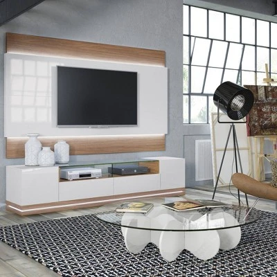 85.43″ Vanderbilt TV Stand For TVs Up To 70″ Off White/Maple Cream – Manhattan Comfort