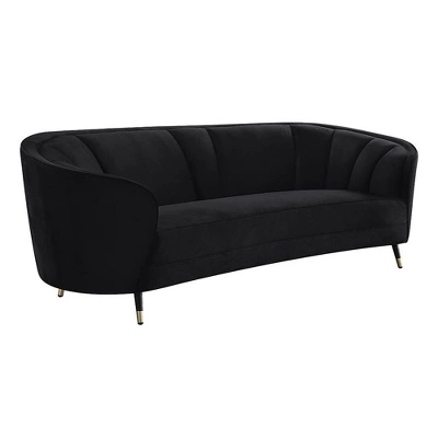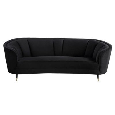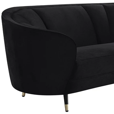 With its curved silhouette, high shelter armrests, and inviting velvet upholstery, the Achim Sofa adds a charming contemporary upgrade to your decor that will surely elevate it. Full-foam seat and deep channel stitching on plush velvet make seating feel extra soft and luxurious. Metal splay legs give the sofa an elegant support.
