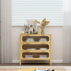 Introducing the 3-Drawer Cabinet from Aash Collection, a beautiful piece of furniture crafted with sustainable bamboo material. This cabinet not only adds a touch of natural beauty to your home decor but also promotes an environmentally friendly atmosphere.With its three spacious drawers, this cabinet offers ample storage space to keep your belongings organized and clutter-free. Whether you need to store clothes, accessories, documents, or other items, this cabinet provides a perfect solution.The bamboo construction ensures the cabinet’s durability, making it a long-lasting addition to your home. Bamboo is known for its strength and resilience, making it an ideal choice for furniture that withstands the test of time.Additionally, the 3-Drawer Cabinet features glass drawers, adding an elegant and contemporary touch to its design. The glass drawers not only enhance the aesthetic appeal but also allow you to easily see the contents without opening them.Aash Collection offers a range of complementary furniture pieces, including a 2-door Cabinet, 1-door Cabinet, 2-Drawer Nightstand, and 1-Drawer Nightstand. These options allow you to create a cohesive and stylish look throughout your home while maintaining the natural and sustainable theme.