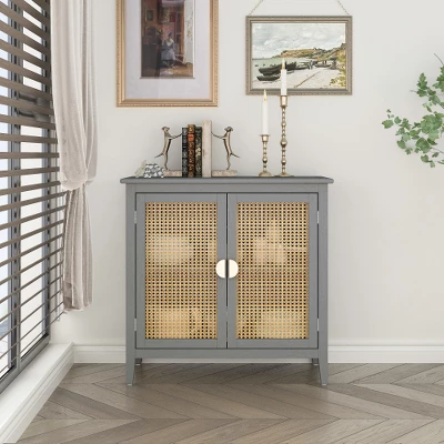 This traditional Amerian style cabinet keeping clutter under control effortlessly provides a perfect choice for you. Boasting a stream-lined appearance, this attractive work of art is a wonderful combination of MDF+ash wood veneer+pine legs,, ensuring a long life with perfect stability and durability. Being a considerate companion to your home decor, it’s hand-painted and incorporates special rattan woven, simulated wood patterns and retro elements on its surface, turning your room into an elegant and textured place instantly and best to show your noble taste. Simply open its double doors to reveal hidden areas, 1-shelves inside provide ample storage to sort out daily essentials conveniently, while the optional neutral hues make this stylish cabinet ideal to blend with your home decor in every style, helping you to create functional living room, dining room or bedroom storage.