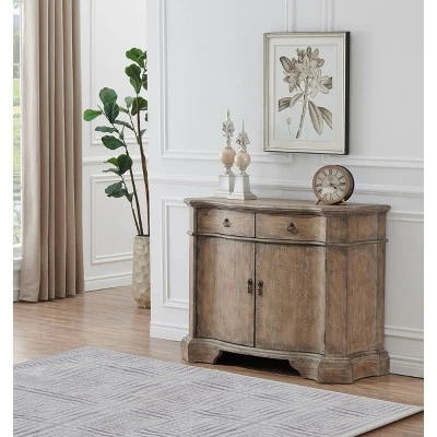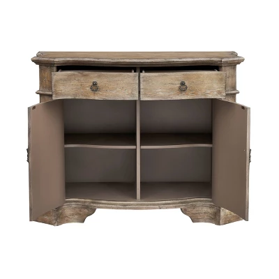 Function and beauty are just two characteristics of this amazing cabinet. A distinctive scalloped shape flows from the top beveled edges to the shapely feet below while our distressed Niko Russet Brown adds an aged appearance to the natural wood tones. This cabinet has that antique quality, plus all the storage room you need. Ideal for your dining room, foyer or den.