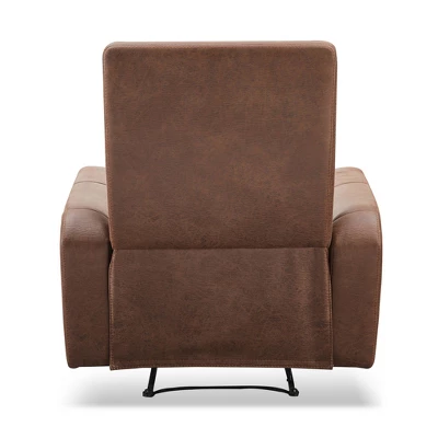 - A manual reclining chair with a chic, structured silhouette creates a comfortable accent piece
