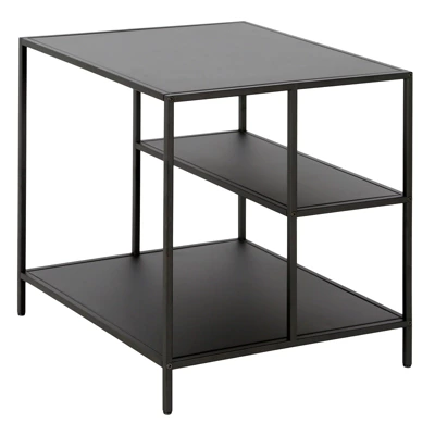 A must-have for contemporary living areas or your modern bedroom, this side table is the perfect piece wherever you need a little extra storage. Crafted from steel, it strikes a clean-lined silhouette that pairs with your existing décor. It boasts a metallic finish and staggered metal shelves for a look that blends with nearly any color palette.Features : Handcrafted finish is applied to the steel frame.Top and shelves are made of steel.Clean with a soft, dry cloth; no harsh chemicals or abrasive cleaning materials.Specifications : Product Dimensions : 20″ x 20″ x 22″Product Weight : 8.4 lbs