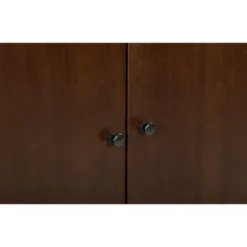 Bring a touch of midcentury modern style to any small space with a two-door storage cabinet. Designed with tapered legs and a low profile, this cabinet is made of walnut-stained wood and features stylish doors and two shelves for plenty of storage space. The roomy interior and large top allow you to use the wooden storage cabinet in a variety of different ways and in virtually any room in the house. Use it as an entry table by the front door, a sideboard in the dining room, or as a mid century bar cabinet. Match the Adore Decor Brookline Two-Door Storage Cabinet with other furniture from the Brookline collection to complete your midcentury modern look.