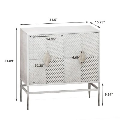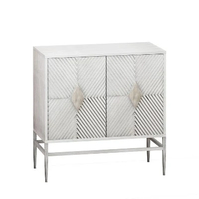 This white washed cabinet is designed with minimalist style along with a stable structure to make a unique statement, which provides powerful practicality rather than a household adornment. With plenty of space to offer, utilize the casual two-door cabinet featuring two-tier storage to minimize clutter while keeping select essentials within easy reach, or display your favorite décor on the spacious upper counter. With decorative fluted doors add beauty and enhances the artistic sense of the entire home.