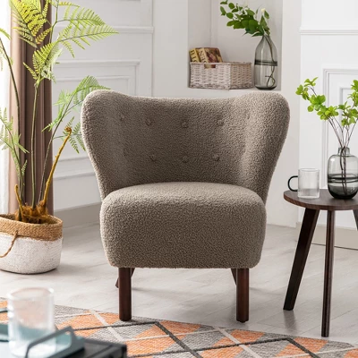 - This accent chair is made extra cozy with thick cushions and a fleecy Faux Sheepskin exterior, adding a unique spin and ultra soft feel.