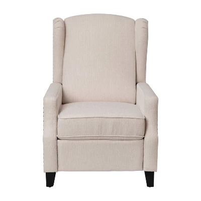Contemporary Pushback Recliner With Accent Nail Trim Fabric Upholstery – Merrick Lane