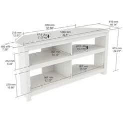 TV Stand by Inval finished in a rich “Washed Oak” laminates in durable melamine which is stain, heat and scratch resistant. This modern designed TV stand has a very functional contemporary shape to accent your home dĂ©cor. It can accommodate up to a 60″ flat-screen TV. The open shelf design allows you to showcase your electronics and maintain your media accessories organized.