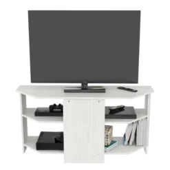 - This modern designed TV stand has a very functional contemporary shape to accent your home décor.