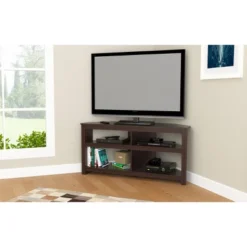 - TV Stand by Inval finished in a rich "Espresso" laminates in durable melamine which is stain, heat and scratch resistant.