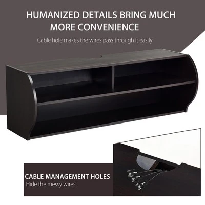 Our wall-mounted TV console will adds a touch of vanity and classiness to your home décor style. Designed with P2 standard MDF and engineered wood, our floating TV cabinet provides the heavy loading shelves to meet your daily storage needs. And the exquisite design cable hole offers a perfect wire management for all your items neat and organized. This contemporary wall-mounted TV shelf with creative design is perfect space-saving solution for your home and makes space utilization efficient.