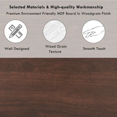 - Selected materials & high-quality workmanship ensure long term use. Premium environment friendly MDF board in woodgrain finish; well designed; wood grain texture; smooth touch