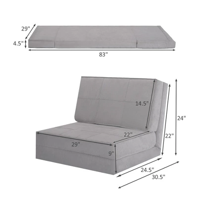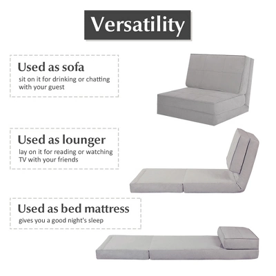 Versatile folding sofa chair easily converts to a lounger or a bed mattress