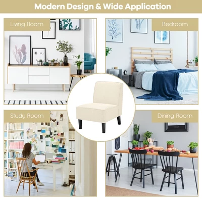 - Multifunctional Usage:The armless accent can not only serve as a good seat in home, bedrooms or living rooms, but also create a cozy seating area by your desk to make you work comfortably. Ergonomic backrest conforms to human body feature and relieve your tiredness.