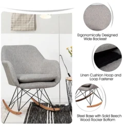 - Thickly Padded Seat Cushion: Designed with 3” thick cushion and high density sponge inside, the whole recreational rocking chair is soft enough for you to enjoy yourself and relax your body after tired work. Its linen fabric slipcover is wear-resistant and skin-friendly.