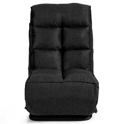 Our adjustable folding floor chair is your ideal company with great sitting experience! The gaming floor chair is constructed with steel frame, which is durable and will not easily deform, thus providing a long service life. 6-position adjustable backrest and headrest enable you to adjust the chair positions to meet your different needs of seating, leaning and reclining. With premium hinge system, the adjustments of back and headrest is smooth and easy. Upholstered with high-density sponge and PP cotton, this floor sofa offers great sitting experience. Besides, the 360-degree swivel base with a protective cover rotates smoothly without scratching your floor. Note: There may be some misprints in the instruction, actually the backrest and headrest have 6 adjustable positions.