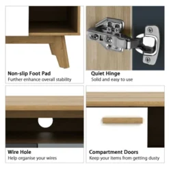 - More Thoughtful Details: There are 3 doors helping keep your items from getting dusty. Plus, each door is equipped with quiet hinges which make for effortless opening and closing. Meanwhile, the entertainment center features non-slip foot pads for better floor protection.