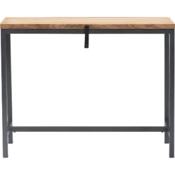 Bring home a dose of welcoming industrial style with this modern console table from iconic American designer Finch. A narrow, solid wood tabletop is made in a light-toned oak finish, and black metal creates a strong, stylish frame. Charming wood grains on the surface add a bit of rustic appeal to this modern living room furniture. The combination of simple, quality materials creates a stylish spot you’ll love returning to again and again at the end of each day. Style this table with a wide steel bowl and decorative rattan balls for an on-trend look, and a key and mail catchall for a modern entryway console table.