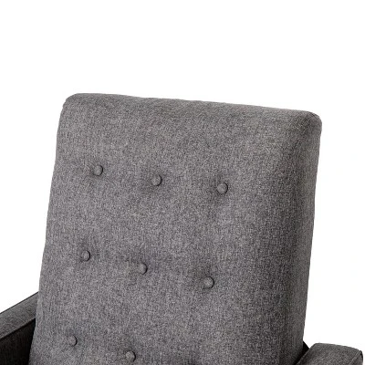 Settle down with your favorite book at home or provide a relaxing seat for guests at your B&B or the waiting room at your office with this modern pushback recliner. Upholstered in soft and durable light gray LeatherSoft and boasting a button tufted back, this recliner chair is stylish enough for any space. Complementary black rubberwood legs round out the look of this modern recliner. Whether you use this chair in a home or business setting, you won’t have to worry about durability. Generous foam padding over no-sag sinuous springs provides a long-lasting chair in any environment. Place your hands on the arms, push backward and allow your body weight to extend the footrest. This commercial grade recliner holds up to 300 lbs. static weight capacity making it suitable for both home and business use. 10 Minutes or less is all it takes to get this reclining chair assembled and ready for use making set up quick and easy. Spot clean with a damp cloth to remove spills. Plastic floor glides will protect your hard flooring surfaces if the chair is moved.