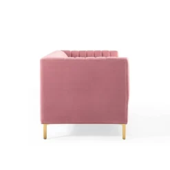 Gently sloping curves and plush removable seat cushions create a favorite living room couch. Whether lounging in solitude or entering a spirited discussion with friends, the Engage mid-century modern tufted top-grain leather upholstered living room lounge 90″ sofa is a welcome presence in your home. Seven buttons create eye-catching appeal, adding depth to a sleek retro modern living room sofa that brings your sitting décor to center stage. Four splayed wood legs and frame supply a solid base to the comfortable quality leather couch for your living room, lounge room, office or other seating area. Sofa Weight Capacity: 552 lbs.