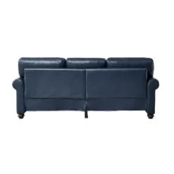 Add this transitional yet sophisticated sofa to create a new way to enrich and complete the style of your living space. It has a solid and manufactured wood frame and is supported by brown solid wood legs for a touch of charm. The leather upholstery has a rich solid color, while the foam padding provides plenty of support as you relax at night. The nailhead trim design on the body of the sofa provides an extra touch of vintage. Rolled arms upholstered in solid wood complete this standout design. This traditional sofa is a perfect fit for ergonomics and makes anyone who sits on this living room sofa feel comfortable. The two complement each other and are a combination of comfort and great looks. Item Size: 82″W*32″D*34″H, Seat Size: 68.7W*20.5D*18D.