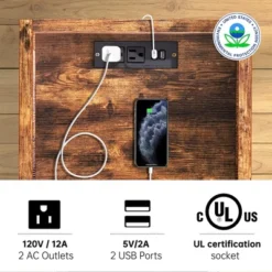 - CHARGING STATION: Equipped with 2 standard plug-in outlets with 2 USB ports and a 6.5-foot power supply cord so you can have your devices charged and ready
