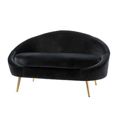 This loveseat, accompanied by a side table, is perfect for small spaces, combining comfort and style effortlessly. As a bonus, it includes a small side table, offering enhanced convenience. Adorned with alluring velvet upholstery and a trendy curved shape, it adds a contemporary flair. The sleek metal legs offer versatility for living rooms, home offices, and bedrooms. Experience the perfect blend of comfort and mid-century modern design with this remarkable 2-piece living room set.