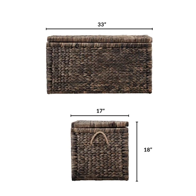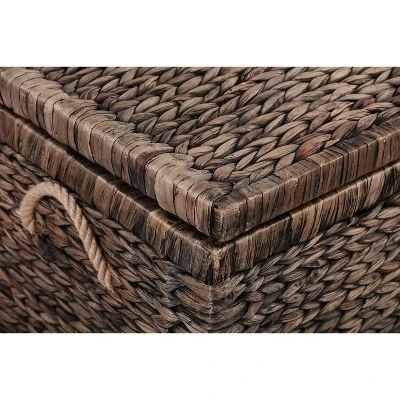 This storage trunk features natural fibers and a black distressed finish that will add farmhouse charm to any style room. In addition to providing additional storage to the living room or bedroom, this rustic trunk will be a nice decorative piece in your living space. This versatile woven trunk can be used as a toy chest or coffee table in your living room or den. It will also look wonderful in your bedroom, at the base of your bed. Ample storage is available in the trunk, perfect for extra blankets or sweaters.