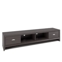 Enhance your living space with the contemporary design of the TBF-605-B TV Stand from the Bakersfield Collection by CorLiving. Enjoy the generous open storage space perfect for housing all of your A/V equipment, and crucial breathing room for all of your high valued electronics allowing them to perform at their full potential. Featured in our Black Ravenwood finish this transitional stand can accommodate most TVs up to 75″. Bring home this contemporary furniture proudly built by CorLiving.