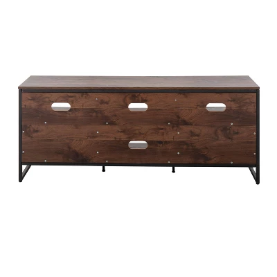 With clean lines and a modern look, the Folia TV Stand by LumiSource is stylish and practical. A metal frame is accented by contrasting wood top and drawers. Featuring three top shelves, ideal for showcasing photographs or electronics, with openings at back to help discreetly manage cords and cables. The lower drawers offer ample storage room for tucking away books, movies, or games. Perfect for any contemporary home, the Folia TV Stand brings a refreshing touch to any living space.