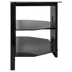 The FS1050VIB-A (Vico) is a stylish, understated, ready to assemble TV Stand that will complement any decor. The gloss black finish and tempered glass shelves gracefully support a TV up to 99lbs (up to 55″), as well as AV components up to 44lbs per shelf. The angled back corners allows for multiple positioning options, as it can be placed flat against a wall or into a corner of a room, providing ideal viewing angles for a larger area. The two lower shelves are perfect for your various AV components such as Digital Receivers, DVRs, Blu-ray, or Gaming Consoles. Installation is kept neat via the built-in cable management with entry and exit points along the length of the column so all power and connectivity wires can easily reach the equipment in an organized, tidy fashion. For TV Sizes: 32, 37, 39, 40, 42, 43, 46, 47, 50, 55. For TVs with wide feet, please measure the width of the feet to ensure it will fit on the stand.