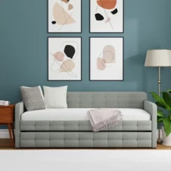 Combining the comfort of your favorite couch with an extra spot to rest, you’ll love this versatile accent piece in your guest room or living spaces. Your days with an uncomfortable pull-out sofa or leaky air bed will be a thing of the past. Skillfully crafted with a solid and engineered hardwood frame this stylish daybed with trundle bed is finished with a lush polyester fabric that is soft to the touch while durable to hold up to heavy use. The daybed features notched arms, curved back and adds a classic mid-century look that will add to nearly any existing decor. Both the Daybed and Trundle accommodate twin size mattresses. Simply roll the built-in trundle deck out from under the sofa and you have the perfect spare bed for a guest to get a good night’s sleep.