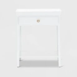 This modern end table is the perfect choice when your bedroom needs a bit of an updated, yet classic look to your home. Nightstand, accent table, entryway or hallway table, the possibilities for this little beauty are countless. Classic styling that never looks old, the white painted wood accent table has one drawer for easy storage and one display shelf on the bottom, for storing whatever you like. This multi-purpose small accent table has clean lines, which makes it is easy to match with any decor or other furniture and it works well in every room.