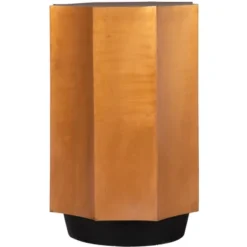 - Metal table comprised of iron sheet metal shaped in flutes with an aged copper finish.