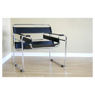 Leather accent chair in sturdy steel frame and durable leather forms Dimensions: 29.92″ High x 28.35″ Wide x 31.1″ Deep; Seating Dimensions: 17.72″ High (from Floor) x 18.5″ Wide x 16.54″ Deep; Back: 12.2″ High; Legs: 24.02″ High