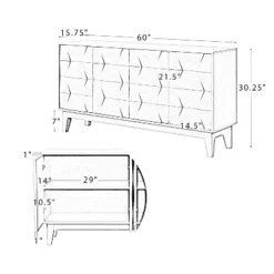 Add flair to your living space with this stunning sideboard. Designed to provide versatile storage in your hallway, this sideboard has 4 doors and 2 interior shelves to store anything you want, such as cosmetics, tableware, etc., and keep everything organized and easily accessible. Its frame is made of solid and manufactured wood for a sturdy construction that is built to last. Four solid wood legs firmly support the entire frame so you don’t have to worry about its weight capacity. A beautiful appearance makes your home warm and cozy and fits perfectly with your living room or dining space. This sideboard is the best choice for your living space. Item Size:60″Wx15.75″Dx30.25″H