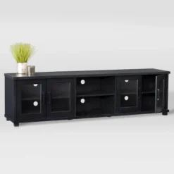Sleek and modern design is found in the TV Bench from the Lakewood Collection. This low profile extra long bench is featured by a wood grain finish accented with imitation nickel handles, includes 2 drawers and 2 open center shelves. Offering a variety of open and concealed storage making it the perfect solution for a classic appearance. This modern TV unit can accommodate most TVs up to 85″. Easy to assemble and a great fit in any living room or entertainment spaces