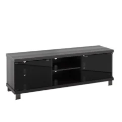 Admire the elegant modern design in the new TV Bench from the Lakewood Collection by CorLiving. This low profile extra long bench is featured in our Dark Wenge finish accented with imitation nickel handles, includes 2 drawers and 2 open center shelves. Offers a variety of open and concealed storage making it the perfect solution for a sleek appearance. This modern bench can accommodate most TVs up to 80″. Easy to assemble so you’ll be set up in no time.