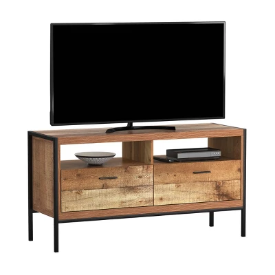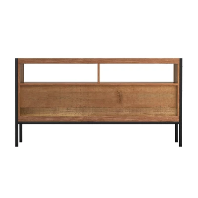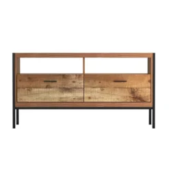 This contemporary rustic style TV/ Entertainment Stand has clean lines with a grounded
