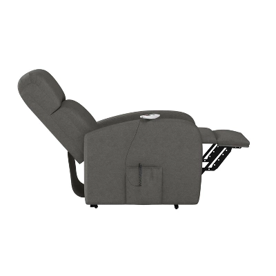 The Loy power lift and recline chair allows you to rise out of your seat with ease and also features massage and heat options which will ensure your total comfort. The infinite position recliner transitions between reclining, sitting and lifting and can stop at any position in-between with the easy to use wire attached remote. This modern styled power lift chair can be extremely helpful for seniors or people with mobility challenges and will be a perfect addition to living rooms, bedrooms, theater rooms and media rooms.