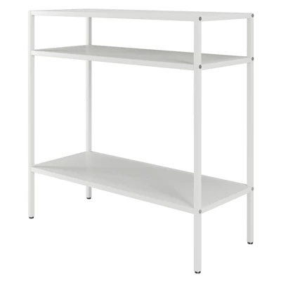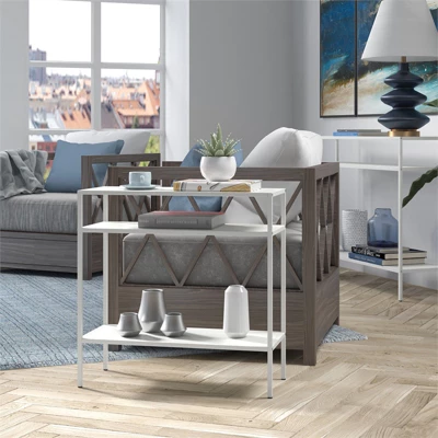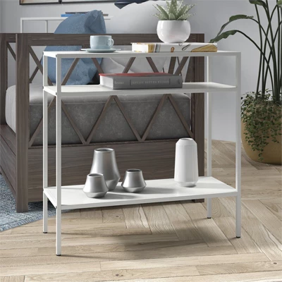 Clean-lined industrial styling gets a contemporary update with the eye-catching matte white finish of this accent table. Its narrow silhouette makes this a versatile piece in small spaces. Use as a micro-console table or pair two as bedside tables.Features : Handcrafted finish is applied to the steel frame.The perfect size and shape for compact spaces.Clean with a soft, dry cloth; no harsh chemicals or abrasive cleaning materials.Specifications : Product Dimensions : 10″ x 24″ x 24″Product Weight : 14.3 lbs
