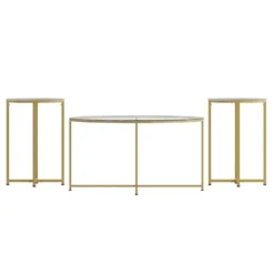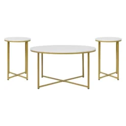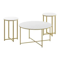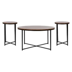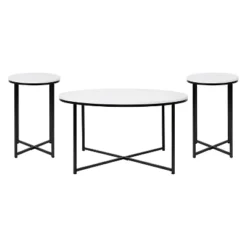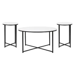 Open concept interior designs request furniture that is chicly functional, and this 3 piece coffee and end table set meets those requests and more. Immediately regarded for their modern aesthetic, the coffee table features a modish x-shaped crisscross frame while the end table provides stylish contrast and agile function. Dynamic in their usage, these pieces are ideal in a multitude of contemporary home spaces.